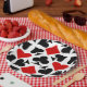 Set von vier Karten Anzug Symbole rot, schwarz und weiß farbiges Muster. Diese Casino Paper Teller sind perfekt für alle, die Kartenspiele wie Poker, Bridge oder Blackjack genießen. Ein lustiges Geschenk für Freunde, Kollegen oder Familie zu Weihnachten oder Geburtstag, und jede Geschenkveranstaltung!