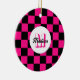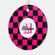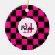 Schachte Quadrate heißen rosa schwarzen Retro Monogram Weihnachtsschmuck. Schachte Quadrate geometrische Retromuster Muster Urlaub Geschenk für sie. Vintage Fliesen schwarz heiß rosa modernes Schachbrett. Personalisieren Sie Ihre individuelle Eingabe und Ihren eigenen Namen.