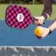 Kartierte Quadrate mit rosa, schwarz Retrogramm Pickleball Schläger