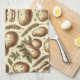 Das ist ein Küchentuch. Es ist mit Kartoffeln mit hellgelbem Hintergrund dekoriert.
