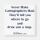 Machen Sie Kartografen nie verrückt. Sie werden dir sagen, wohin du gehen und dir eine Karte gezeichnet hast.