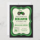 Erleben Sie die coole Geburtstagsparty zum Traktor-Thema mit einem niedlichen grünen Bauerntraktor mit moderner Typografie auf einem Kalkboard-Hintergrund. Fügen Sie einfach Ihre Veranstaltungsdetails zu dieser einfach zu bedienenden Vorlage hinzu, um sie zu einer einmaligen Einladung zu machen. Dreh die Karte auf, um eine schöne grüne Grasstruktur auf der Kartenrückseite zu zeigen.