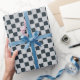 Checkerboard Karton Navy Blue Black und White Wrapping Paper.