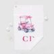 Personalisieren und fügen Sie Ihre Monogrammbuchstaben, -initialen. Weißer Hintergrund. Dekoriert mit einem rosafarbenen Golfwagen und einem gürtelförmigen Bug. Rosa Monogramm Buchstaben, Initialen.