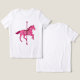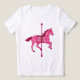 T-Shirt in einer gemischten Mediagrafik eines klassischen Karussellpferdes, in gemischten Mustern, mit arabesischem gefliestem Hintergrund - Deep Fuchsia und Blassrosa, bordeauxfarben