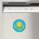 Flagge Kasachstans. Die aktuelle Flagge Kasachstans oder Kasachstans (Kasachstan: Қ: а қ т а сз je nach Qazaqstan twı) wurde am 4. Juni 1992 adoptiert und ersetzt die Flagge der Sozialistischen Republik Kasachstan Kasachstans. Die Fahne wurde von Shaken Nijasbekov entworfen. Die Nationalflagge der Republik Kasachstan hat eine goldene Sonne mit 32 Strahlen über einem steilen, goldenen Steppenadler, die beide auf einem himmelblauen Hintergrund zentriert sind; auf der Hüftseite zeigt sich ein nationales Ziermuster "koshkar-muiz" (das Horn des Widders) in Gold; die blaue Farbe ist für die turkischen Völker des Landes von religiöser Bedeutung und symbolisiert somit die kulturelle und ethnische Einheit; Die Sonne, eine Quelle des Lebens und der Energie, steht für Reichtum und Fülle; die Sonnenstrahlen sind wie Getreide geformt, das die Grundlage für Überfluss und Wohlstand bildet; der Adler taucht seit Jahrhunderten unter den Fahnen der kasachischen Stämme auf und steht für Freiheit, Power und den Flug in die Zukunft.
