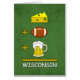 Käse plus Fußball plus Bier entspricht Wisconsin. Lustige humorvolle Wisconsin-MolkereiStaat Cheesehead Karte im traditionellen Grün und im Gold.