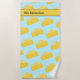 Dieses Käsestück im Cartoon hat die klassischen "Mauslern". Das Käsemodell wird auf einem hellblauen Hintergrund wiederholt, und es gibt einen Platz an der Spitze, wo Sie das Strandtuch mit Ihrem Namen, Initialen oder einem lustigen Slogan personalisieren können.