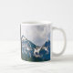 Auf dieser Tasse des Kaffees steht ein Aquarellbild von felsigen, schneebedeckten Berggipfeln im Cascade-Gebirge mit immergrünen Bäumen. Perfekt für alle, die im Freien Lieben! Erstellt aus einem digital modifizierten Foto, das im Nationalpark des Berges Rainier aufgenommen wurde.