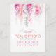 Kaskadenspeisen mit Hochzeitskorallenrosa Blume Begleitkarte