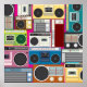 Farbiger Retro-Kassettenspieler und Radio-Flachbild-Illustration auf rosa Hintergrund