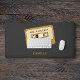 Eine schwarze Schreibtischmatte mit Kassettenband und anpassbaren Texten für einen 80er und eine nostalgische Touch der 90er Jahre. Perfekt, um einem Liebhaber von alter Schulmusik und Vintager Ausrüstung ein Geschenk zu machen!