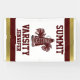 Themenorientierte vertikale Fahne der Cheerleader getan im Weiß, mit einem goldtone und kastanienbraunen Streifen, auf der Spitze und der Unterseite. Kastanienbraune grafische Grafik eines Megaphons und der pom poms, verzieren die Mitte der Fahne, mit dem kundenspezifischen kastanienbraunen Text, der bereit ist zu personifizieren. Wahlen für Innenfahnen oder Fahnen im Freienohne Gummimuffen ist verfügbar.