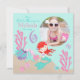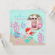 Geburtstags-Einladungskarte der süßen kleinen Meerjungfrau fügen 6. mit Unterwassergeschöpfen und ein Foto Schablone ein.