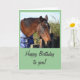 Diese Grußkarte ist perfekt für einen Pferdefreund, mit einem Foto-Portrait eines schönen Kastanienpferdes. Es ist einfach, den Titeltext und den Gruß im Inneren durch Wörter Ihrer Wahl zu ersetzen.