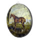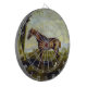 Dieses Design zeigt ein Gemälde des englischen Künstlers George Stubbs (1724-1806), der für seine Darstellung von Pferden berühmt wurde. Es zeigt ein elegantes Racehorse mit einem schönen, kastanienfarbenen Mantel stehend im Profil. Sein Körper ist stark und schlank. Das Pferd ist frei und frei in einer Landschaft neben einem alten Weidenbaum mit Algen, umgeben von grünen Wiesen, stehend. Die Ohren des Pferdes sind zurück, was darauf hindeutet, dass das Tier aufmerksam ist und Befehle oder Geräusche in der Umgebung hört. Ein Rennpferd wie dieses könnte bis zu 50 Meilen pro Stunde galoppieren.