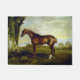 Dieses Design zeigt ein Gemälde des englischen Künstlers George Stubbs (1724-1806), der für seine Darstellung von Pferden berühmt wurde. Es zeigt ein elegantes Racehorse mit einem schönen, kastanienfarbenen Mantel stehend im Profil. Sein Körper ist stark und schlank. Das Pferd ist frei und frei in einer Landschaft neben einem alten Weidenbaum mit Algen, umgeben von grünen Wiesen, stehend. Die Ohren des Pferdes sind zurück, was darauf hindeutet, dass das Tier aufmerksam ist und Befehle oder Geräusche in der Umgebung hört. Ein Rennpferd wie dieses könnte bis zu 50 Meilen pro Stunde galoppieren.