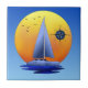 Katamaran-Segelboot und Kompass-Rose Fliese