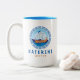 Katerini, Griechenland Zwei-Töne-Kaffee-Tasse mit einem Design eines alten griechischen Schiffes und griechischem Stil Buchstaben. Dieses antike griechische Schiff Design hat den griechischen Schlüssel in einem Kreis-Design mit dem Meer und Himmel. Dieses griechische Design macht diese Tasse zu einem idealen Geschenk für Andenken oder Kaffee zu trinken während Sie in Katerini Urlaub machen.