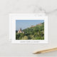 Postkarte der Kathedrale und höher auf dem Hügel die Bergstadt Montepulciano im Val d'Orcia Tal in Toskana, Italien mit einer weißen Grenze und dem Text: "Montepulciano".