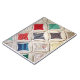 Nahes oben aus dem alten Kathedralfenster Steppmuster mit Nadel und rotem Faden.