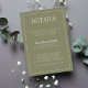 Eine wunderbare Einlage, um alle Details, die nicht auf der Hochzeitseinladung oder rsvp-Karte enthalten sind - wie die Empfang-Informationen oder die Hochzeitswebsite. Perfekt koordiniert mit der Sammlung Katherine Curated Colors. Bitte kontaktieren Sie mich, wenn Sie Hilfe beim Anpassen des Textteils dieser Details wünschen.