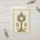 Mit einem schönen, individuell gestalteten Bild der Eucharistin in einem Monstranz und Engeln, die auf jeder Seite verzieren. Der Rücken hat ein schönes traditionelles katholisches Gebet und Hymne, "O Sacrament Most Holy".