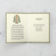 Mit einer hübschen, nach Maß entworfenen Bestattungskarte mit einem Bild der gesegneten Jungfrau Mary überlagerte sich unsere Lady of Fatima auf einem Goldkreuz. Im Inneren ist das gleiche Bild mit einem Schriftzug Vers und blauen Blumenrahmen.