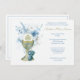 Mit unserer traditionellen katholischen Erstkommunion blauen Blumen-Einladung mit der Heiligen Eucharistin mit Weintrauben. Auf der Rückseite ist ein Zitat aus der Schrift. Schriftart, Texte und Bilder können geändert werden.