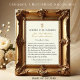 Mit einem wunderschönen, katholischen Bild des Betrothals von Maria und Joseph mit einem goldenen Zierrahmen, der mit weißen Blume und einem weißen Spitzenhintergrund besticht. Ein Gebet steht auf der Rückseite für Braut und Bräutigam. Alle Texte und Schriftart können geändert werden.