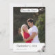 Das Design enthält das Foto, das Sie als Hauptbild bereitstellen. Die Überschrift und das Datum werden in einem eleganten, silberfarbenen Nuptial Schriftart angezeigt. Die Stadt und der Staat der Hochzeit werden unten in klein gedruckt angezeigt. Das Bild einer delikaten Rose wird verlassen der Position positioniert. Unten rechts zeigt sich das Bild der schönen rosa und weißen Blume. Umgekehrt zeigt das Bild eines Kreuzes und verbundenen Ringen über dem eines kleinen rosa Herzens. Die Registrierungsinformationen werden unten in einem kleinen Druck angezeigt.