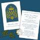Diese verehrte katholische Hochzeitsgebet-Karte zeigt ein strahlendes goldenes Marian Monogramm, gekrönt in Ruhm und gerahmt in einem marian blue arch. Die Front ehrt die Gottesmutter, deren Fürsprache das Sacrament der Heiligen Ehe segnet. Im Inneren betet ein feierlicher Brautsegen für die Einheit, den Frieden und die Heiligkeit des Paares nach dem Vorbild der Heiligen Familie. Ein hochgeschätzter Pfarrer für Hochzeiten, der in der Schönheit der katholischen Tradition und der Hingabe an die gesegnete Jungfrau Maria wurzelt.