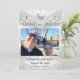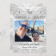 Katholische Imitate-Satin Mit Monogramm Save the Date Design zeigt die Initialen der Braut und Bräutigam angezeigt zusammen in der oberen Mitte mit einem Kreuz auf beiden Seiten verbunden. Das symbolisiert die Gewerkschaft des Paares mit Christus und einander. Ihr Foto wird als Hauptentwurf angezeigt. Zurück zeigt sich ein hübscher Hintergrund mit Imitate-Satin, der den ersten Nachnamen des Paares in der Mitte vorstellt. Der gesamte Text ist in einem schönen silbernen Schriftart. Sehr elegant.