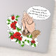 Dieser wunderschöne Kontur-Aufkleber zeichnet sich durch ein traditionelles katholisches Bild von betenden Händen, die den Rosenkranz mit rote Rosen halten, und ein Zitat von St. Padre Pio. Alle Texte und Schriftart können geändert werden.