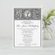Dies ist eine schöne traditionelle katholische Priesterordination und/oder Jubiläumsfeier Einladung mit einem Schwarz-Weiß-Kunstbild des Kalice und Gastgeber mit den lateinischen Worten gesagt am Fuß des Altars. Alle Texte und Schriftart können geändert werden.