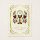 Mit einem wunderschönen katholischen Bild des Eucharisten über einer goldenen Kneipe mit einem schönen Spray für rote Rosen.überlagert auf einem weißen Spitzenhintergrund. Ein Gebet steht auf der Rückseite für Braut und Bräutigam. Alle Texte und Schriftart können geändert werden.