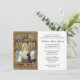 Schöne traditionelle katholische Erste Heilige Kommunion Einladung mit Jesus die Eucharistin mit Engeln halten, die sie einem jungen Jungen und Mädchen am Altar anbieten. Ich glaube, die sie begleitenden Heiligen sind St. Aloysius Gonzaga und St. Agnes. Geeignet für einen Jungen oder eine Mädchenkommunion. Auf der Rückseite ist ein Zitat der Schrift mit einem Schwarz-Weiß-Bild des Wirts, Chalice, & Weizen repräsentiert das Brot des Lebens, Jesus. Schriftart, Texte und Bilder können geändert werden.