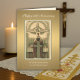 Feiern Sie das Jubiläum des Priestertums mit diesem wunderschönen traditionellen katholischen Vintage-Bild des Priesters, das das Heilige Opfer der Messe am Altar bietet. Ein Schriftzeichen-Vers ist innen wie ein Gruß. Alle Texte und Schriftart können geändert werden.