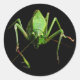 Dieser Aufkleber zeichnet sich durch einen lebendigen grünen Katydid aus. Katydids sind mittelgroße bis große Insekten. Sie sind gewöhnlich grün, manchmal mit braunen Markierungen, und werden getarnt, um sich mit den Blätter, auf denen sie gefüttert haben, zu vermischen. Ihre sehr langen Antennen unterscheiden sie von Grashüpfern. Nah gesehen, scheinen sie Außerirdischen aus dem Weltall zu sein!