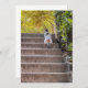 Auf den Stufen der Treppe ist die Katze im Eimer