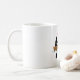 Eine Katze und eine Person in einem Ruderboot. Dieses Design sieht auf dieser Tasse wirklich effektiv aus