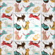 Katzenliebhaber werden dieses niedliche Katzenmuster mit springenden, sitzenden und schlafenden Katzen mit "miau" in verschiedenen Sprachen lieben.