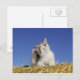Kätzchen auf Strohhalm sitzen, kratzend, nah-up Postkarte