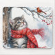 Kätzchen beim Kardinal in Schneeflocken Mousepad