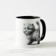 Eine niedliche Holzkohleskizze eines Kätzchens, abgeschieden auf weißem Hintergrund mit grünen Augen und einer rosa Nase, die rückwärts mit der Definition einer Katze im Wörterbuch schaut.