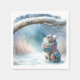 Eine niedliche Katze sitzt im Schnee, in einer bunten Narbe eingewickelt, während sie auf den fallenden Schneeflocken blickt