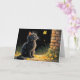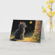 Kätzchen sieht ein fallendes Herbstblatt Karte