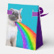 Kätzchen spuckt Regenbogen auf Geschenkschachtel