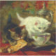 Aufkleber mit Henriëtte Ronner-Knip Ölmalerei High Tea (1821-1909). Ein flauschiger, weißer Teetrinken aus Teekocher und ein Tabby nibbeln ein Gebäck auf einem Teetablett. Ein perfektes Geschenk für Katzenliebhaber und Romantiker.
