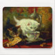 Mouse Pad mit Henriëtte Ronner-Knip Ölmalerei High Tea (1821-1909). Ein flauschiger, weißer Teetrinken aus Teekocher und ein Tabby nibbeln ein Gebäck auf einem Teetablett. Ein perfektes Geschenk für Katzenliebhaber und Romantiker.
